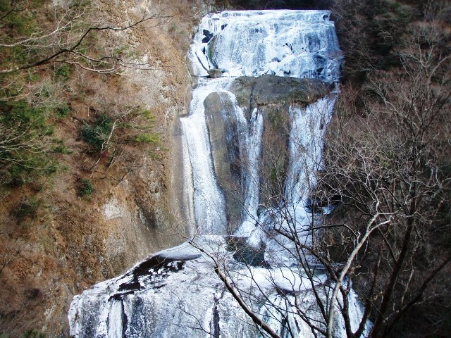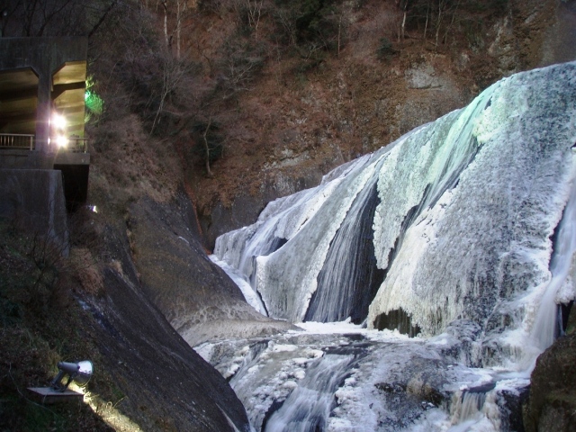 日本三名瀑の1つである「袋田の滝」は冬のうち、厳しい冷え込みが続くと凍り始め、数年に一度は完全に凍結します。厚い氷が張ると、ロッククライミングならぬ、アイスクライミングが行われるほどです。最近では4年前に完全凍結しました。