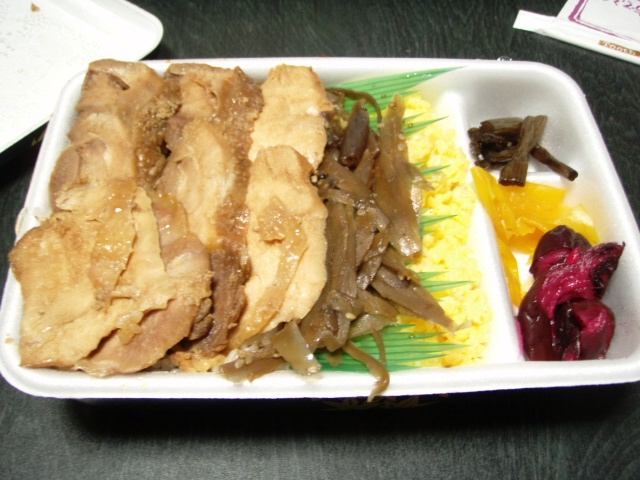 水戸に帰る前に、奥久慈しゃもを使った弁当を買ってきました!水郡線常陸大子駅のすぐ近くにある玉屋旅館の「奥久慈しゃも弁当」(¥950)です。しゃも肉、たまご、ゴボウ、漬け物と、シンプルですが大満足の弁当でした!