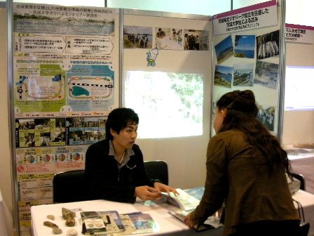 私たちはジオパークや私たちの活動のポスター、作成したマップの展示などを行いました。「サイエンス」という言葉の印象からか、ジオパークという言葉を見た方々からは「この会場では珍しい内容だねぇー」と、ジオパークや私たちの活動の話を聞いてくださいました。