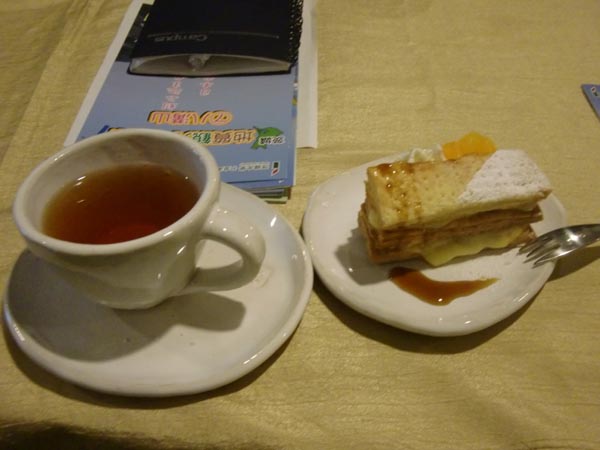 サイエンスカフェの最中にはケーキと飲み物が配られました。今回のテーマに合わせて、地層をイメージしたケーキなのです!!更にいくつかのケーキには化石(くるみやレーズン)が入っているとか。ワクワクしながらケーキを頂きました(残念ながら自分のケーキには入っていませんでした…)。