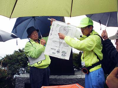 忘れじの碑では、風船爆弾の仕組みとそこに関わる地質の以外な話をインタープリターの手作りによる資料を使いながらの解説を受けました。