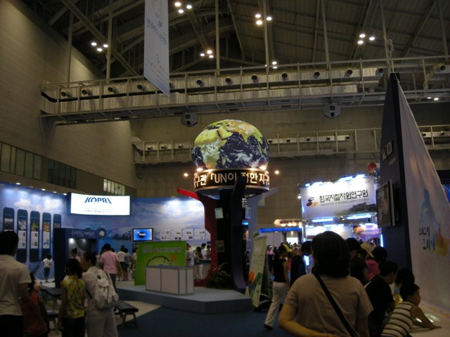 それはさておき、韓国では、主に韓国科学フェスティバルというものに参加してきたのですが、日本と違って科学なのに大人から子供まで楽しめるようになっており、ものすごい活気がありました。そして地学のコーナーが全体の約4分の1占めていました。日本と違って韓国では地学が認められているようです。