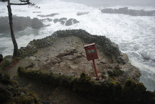 ここは断崖絶壁が続いている場所です.海面から数mの場所には美しい六角堂が建っていましたが,津波によって跡形もなくさらわれてしまいました.