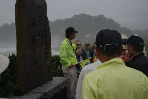 最後に長浜海岸へと移動し,インタープリターの鈴木さん・鹿田さんから風船爆弾と地質についてお話がありました.戦時中,アメリカへと飛んできた風船爆弾がどこから来たものなのかを見破ったのが地質屋というお話です.