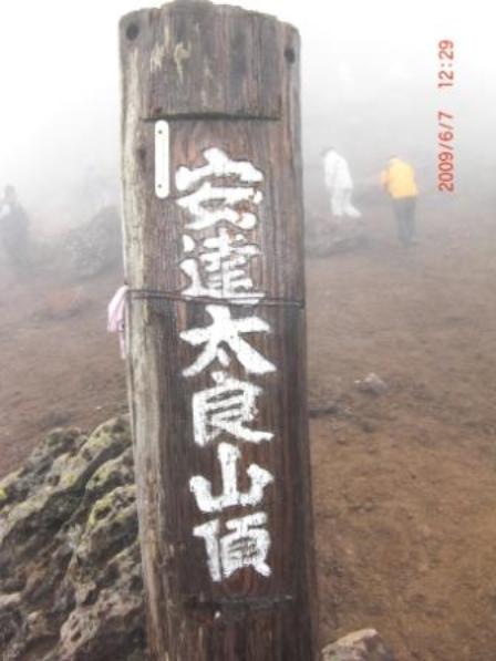 吾妻小富士山頂です。左側が火口なんですが、ガスで全然見えないですね・・・。