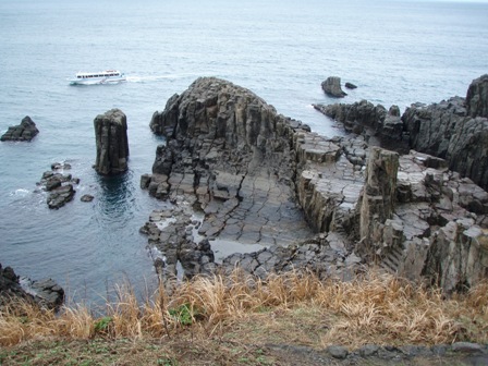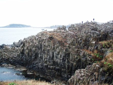 実際に行く前に「東尋坊」について調べていたのですが、色々なサイトに「輝石安山岩の柱状節理は、世界的にも貴重で東尋坊を含め世界で3箇所しかない」とか何とか・・・。うーん、輝石安山岩は日本でも普通によく見られる火山岩だし、その柱状節理もよくあるはずなんだけどなぁ、と思いつつもっと調べてみると、「これほどの規模のものは世界で3箇所しかない」という記述を発見。なるほど、それなら納得。