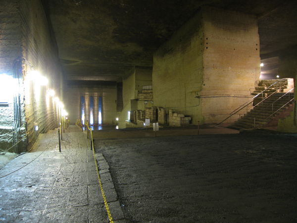 大谷石は、栃木県宇都宮市大谷に分布します。下の写真は大谷資料館の中の大谷石です。