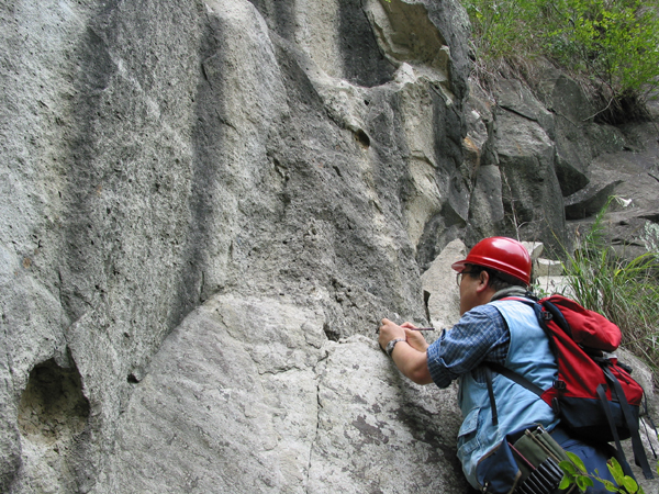 「地質観光まっぷ ③袋田の滝」のポイント①、ポイント②でみられる岩石は、この時代に堆積しました。詳しくは「地質観光まっぷ③袋田の滝」の裏面、袋田周辺の成り立ち1.陸の時代第一章をご覧ください。