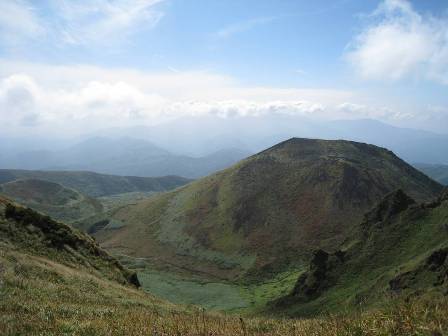 下の写真は横岳山頂から撮った、カルデラ内部の写真です。