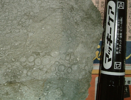皆さんも是非探してみてください!下の写真は上小川駅近くの大沢口に露出する大沢口凝灰岩部層の露頭と、そこで見られる火山豆石です。