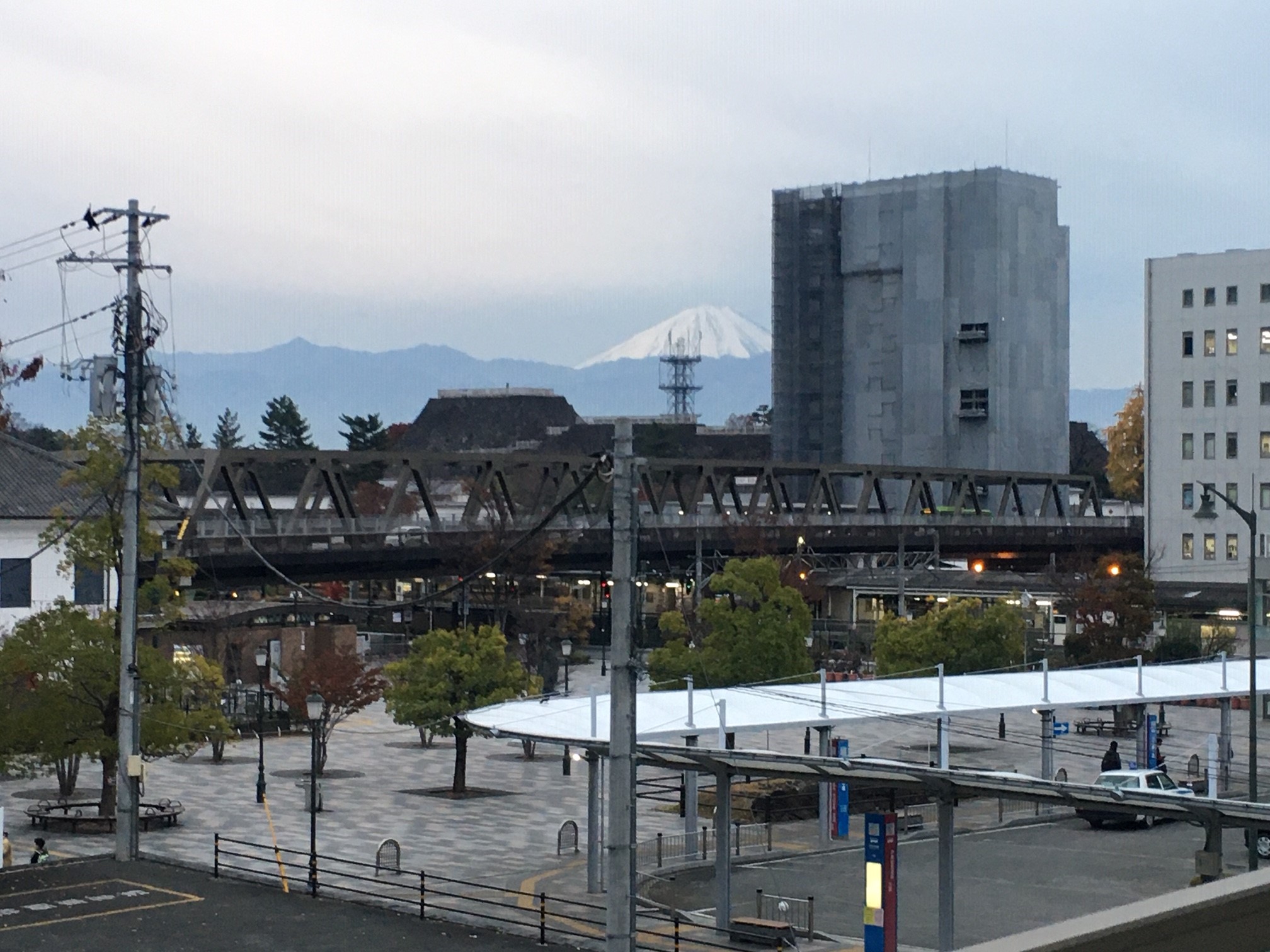 甲府駅前からの富士山です.今日は特に寒かったですが,非常にくっきりとその姿を見ることができました!